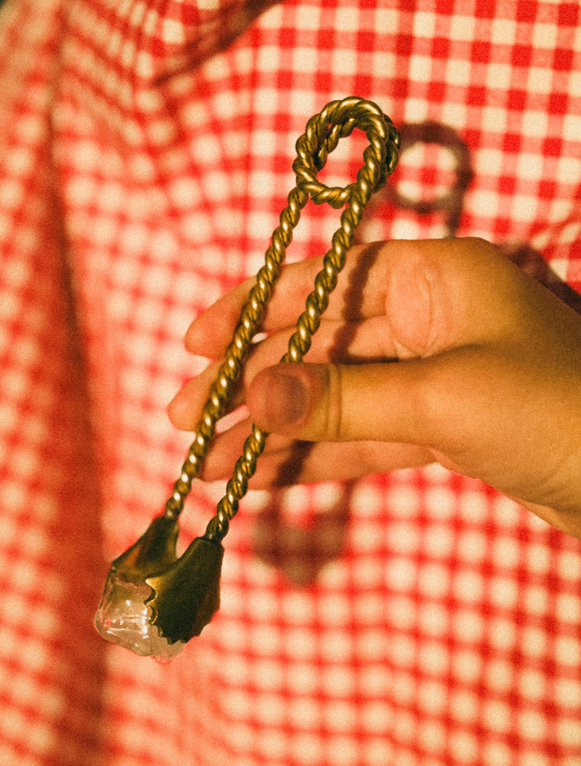 Delicada e firme, esta pinça é uma daquelas pequenas preciosidades que transformam um gesto simples em ritual elegante. O latão torcido, com o brilho já suavizado pelo tempo, revela a mão do artesão e o gosto pelos detalhes que atravessam décadas. Versátil, serve tanto para o açúcar como para gelo ou pequenas iguarias, trazendo à mesa um toque de encanto antigo, discreto e cheio de presença.