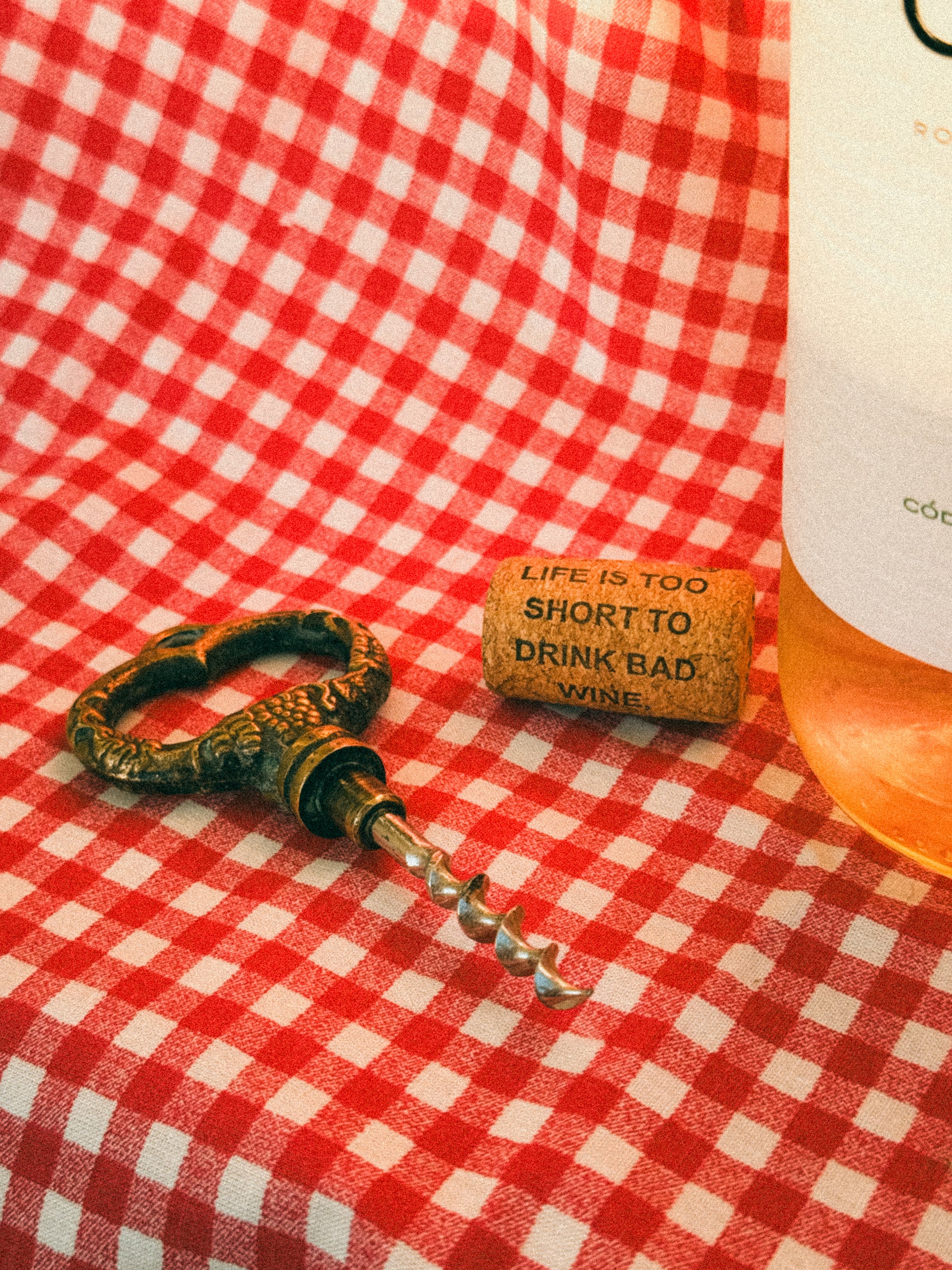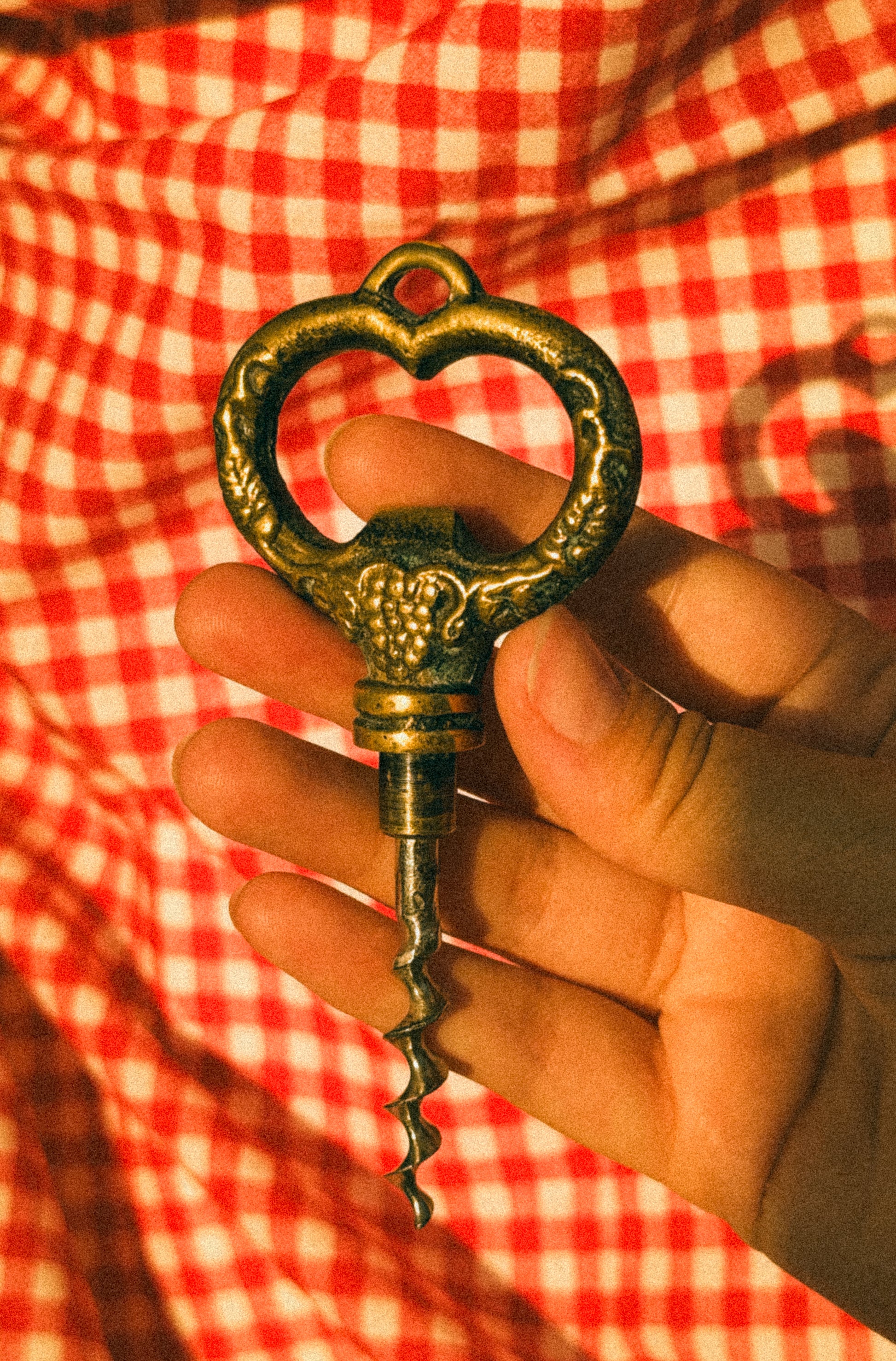 Pequeno, sólido, encantador — este saca-rolhas parece feito para as mesas de madeira gastas, os almoços longos e os vinhos que se abrem devagar. O latão, já levemente escurecido pelo tempo, guarda o brilho discreto de um objeto que foi usado e estimado. O cabo, em forma de coração, acrescenta-lhe uma nota inesperada de ternura, como um segredo partilhado entre quem serve e quem brinda.